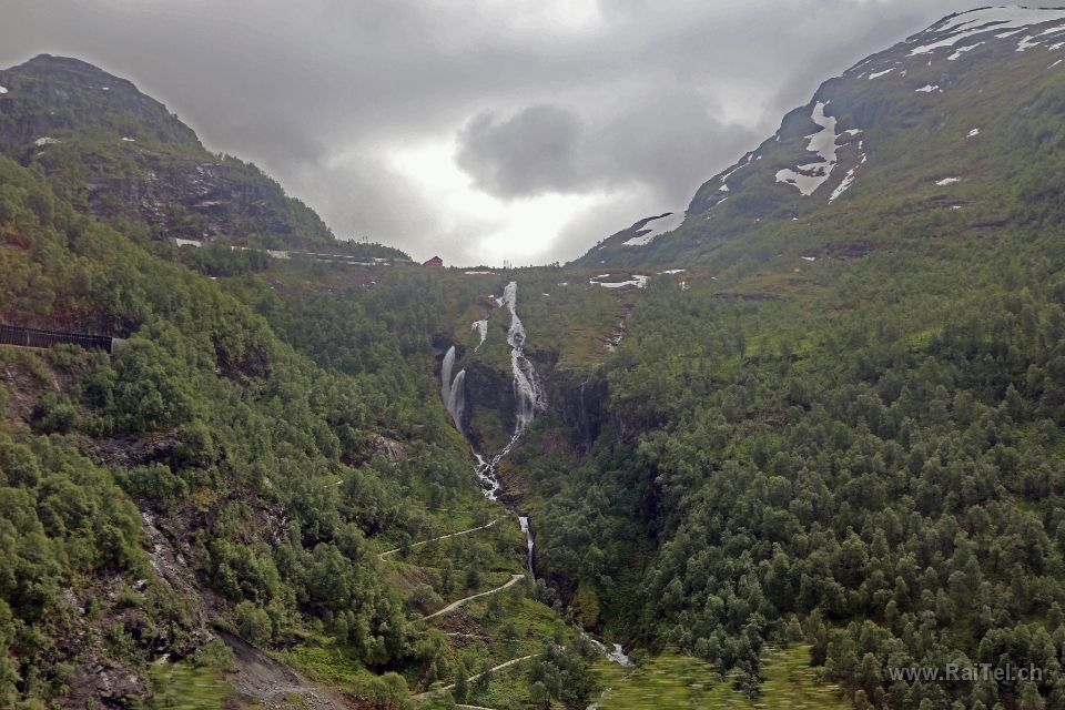 Fahrt mit der Flamsbana; der 200m hohe Kjosfossen